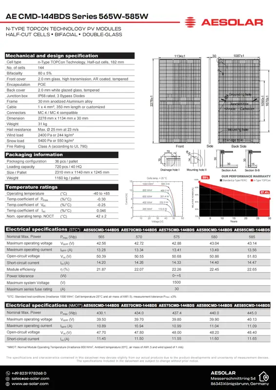 Monocrystalline pv module 585w